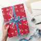 Elegantes copos de nieve decoran este vibrante papel de envoltura rojo. El diseño es de arte original.