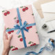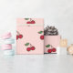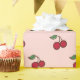 Un patrón de cereza en un fondo rosado da a este envolvimiento el estilo retro del papel. El diseño es de arte original.