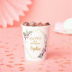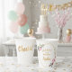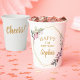 Celebre con estilo con nuestros Vasos de Papel para Cumpleaños 21 adornados con cautivadoras flores de sakura rosadas al estilo japonés y líneas doradas lustrosas, dispuestas con gracia para formar una elegante corona. Esta vajilla para cumpleaños de hito chic emana sofisticación para su día especial. La plantilla presenta un sincero mensaje de feliz cumpleaños y un nombre personalizable, bellamente impreso en un lado de la taza, mientras que el otro lado luce una exclamación "brindis" grande y elegante, todo presentado en un opulento amarillo dorado contra una base blanca prístina. Estas tazas brindan la oportunidad perfecta para personalizar el diseño y crear su propio ambiente único y lujoso sin romper el banco.