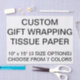 El personalizado imprimió personalizó 10" x 15" PAPEL SEDA BLANCO (TAMAÑO PEQUEÑO) PARA ENVOLVER la plantilla en blanco de los REGALOS. El diseño, crea, hace sus los propios. Su foto, imagen, texto, logotipo, gráficos en la impresión a todo color del borde-a-borde. disponible de papel 10lb en 7 colores, comparables al papel seda estándar (también disponible en el blanco 16lb).