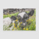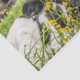 Papel seda adaptable con la fotografía de una vaca del bebé que miente en hierba gruesa y flores amarillas
