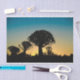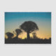Papel seda con una imagen imponente de los árboles del estremecimiento silueteados contra un sol poniente cerca de Keetmanshoop en Namibia.