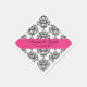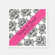 Servilletas de papel personalizadas para boda con patrón de damasco en negro y blanco. Una banda rosa intenso atraviesa la servilleta en diagonal, con texto en negro. Personalice el texto con los nombres de los novios y la fecha de la boda.