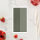Esta moderna servilleta de papel verde musgo con división vertical combina la elegancia discreta con la versatilidad práctica. Con una división elegante entre un verde musgo mate y un acabado moteado texturizado, el diseño crea interés visual y al mismo tiempo permanece lo suficientemente neutral como para coincidir con una amplia variedad de temas de eventos. El contraste de color armonioso evoca una estética refinada y natural, perfecta tanto para celebraciones de alta gama como para reuniones informales.