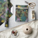 Una hermosa y fina huella de arte de "The Cedar Tree" creada por Arthur Sanderson & Sons Ltd., un fabricante británico de tejidos y papel pintado fundado en 1860. Este diseño particular data de 1910 y se imprimió en bloque en papel hecho a máquina. El diseño tiene un sólido fondo negro, contra el cual se sienta una rama diagonal de ciprés desde la cual crece cúmulos de ciprés siempre verde salpicados con grandes manojos de flores de lilo y follaje, y cúmulos colgantes de glicinia amarilla. En la rama se encuentra un gran pavo real con un cuerpo rico y marrón, cuello y cabeza azules, y una cola azul de lujo que cae entre las flores y el follaje.