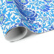 Papel envuelto en papel pintado de William Morris, flores de color azul marino y cobalto, acentuadas con cal, con vinagretas de color azul ceruleano y frondoso, sobre fondo blanco
