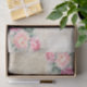Hermosos rosas acuáticos en tonos rosa, melocotón y melocotón, emparejados con la antigua Torre Eiffel en Sepia, en París, con un fondo de color crema crudo con un suave damasco vintage para hacer este papel de tejido de temática francesa para envolver o artesanía de regalo y desacoplar.