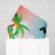 Tejido de papel con la imagen de un chica hula bailando en la playa y la palabra "Aloha".