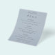 Menú Boda azul turbio de texto simple. Una alternativa de PAPER (no tarjeta) de gran valor SIN ENVELOPES a un tamaño menor de 4,5" x 5,6" y a un precio económico. También puede cambiar el estilo de letra y los colores y los colores de fondo en el frente y en la parte posterior si lo desea a través de la opción Click to Personalizar Más adelante.