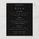 Menú Boda blanco de texto simple negro. Una alternativa de PAPER (no tarjeta) de gran valor SIN ENVELOPES a un tamaño menor de 4,5" x 5,6" y a un precio económico. Puede cambiar el estilo de letra y los colores y los colores de fondo en el frente y en la parte posterior si lo desea a través de la opción Click to Personalizar Más adelante.