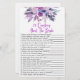 Este es un juego de 20 preguntas sobre el juego de la ducha de novia. 20 preguntas sobre la novia - La novia rellenará su propia hoja de respuestas personal. Los huéspedes rellenarán las respuestas a las preguntas en la medida de sus posibilidades, teniendo en cuenta sus conocimientos personales sobre la novia. Quien tenga las respuestas más correctas, gana! flores moradas violeta plum violet lavender lilac, juegos de ducha de novias, 20 preguntas sobre la novia, la novia por ser, conocer la novia, juego de ducha de novias, actividades de ducha de novias