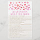 Este es un juego de 20 preguntas sobre el juego de la ducha de novia. 20 preguntas sobre la novia - La novia rellenará su propia hoja de respuestas personal. Los huéspedes rellenarán las respuestas a las preguntas en la medida de sus posibilidades, teniendo en cuenta sus conocimientos personales sobre la novia. ¡Gana quien tenga las respuestas más correctas! El juego consiste en un diseño cardíaco rojo y rosa. Ideal para una ducha de temática El día de San Valentín. Corazón rosado y rojo, juegos de ducha de novias, 20 preguntas sobre la novia, la novia por ser, conocer a la novia, juego de ducha de novias, actividades de ducha de novias