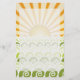Estacionamiento con diseño de diferentes tonos de olas verdes con el sol levantándose en el horizonte.
