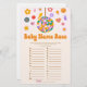 Este es un juego de Baby Shower de Hippie Groovy Vintage con el tema del Retro 70. *Raza por nombre del bebé - Escriba un nombre de bebé que comience con cada letra. ¡La persona con más nombres gana! Discoteca ducha de bebé, chicas ideas de ducha de bebé, actividades de ducha de bebé rosadas de 70 años, juegos de ducha de bebé símbolo de la sonrisa