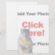 ¡Agrega un Squirrel personalizado a cualquier foto! Agrega una adorable ardilla a cualquier foto que te guste en solo unos sencillos pasos. Simplemente sube tu imagen y luego haz clic en el Sr. Squirrel para moverlo o cambiar su tamaño para una fotografía con fotobomb realmente original y divertida que puedes colocar en botones, tarjetas de felicitación, imanes e incluso adornos navideños. Una foto personalizada del Sr. Squirrel es el regalo perfecto para amantes de las ardillas, amantes de los animales o cualquiera que ame una buena risa. Simplemente haz clic abajo en "tu foto aquí" en el lado derecho de la pantalla para empezar.
