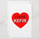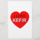 Amo a kefir. Kefir es una bebida probiótica natural elaborada con leche. Imagen de corazón rojo con texto.
