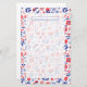 Características del este diseño del arte popular un estampado de flores azul y coralino brillante.