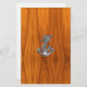 Un cromo de plata como diseño del ancla de la cuerda en una decoración de madera del fondo del estilo del grano de la teca. Un regalo náutico moderno mordaz.