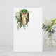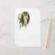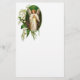 pintura de arte vintage de un ángel de blanco dentro de un marco oval verde y flores blancas.