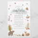 Simplemente cree una tarjeta de invitación para bebés para animales de bosque adorable con esta plantilla que incluye un búho, zorro, oso, ardilla, ciervo, setas y más para su ducha de tema principal de la cabaña para la futura madre. CONSEJO: Consulte los otros artículos de esta colección con el mismo diseño para obtener una experiencia de compra completa y sencilla para su fiesta de ducha de bebé.