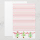 Papel rojo de festividad adornado con pequeños árboles de Navidad adornados con cintas rojas y adornos con carteles de cinta roja dos ilustrados con acuarela. Es bueno para escribir cartas, hacer periodismo, hacer listas, y más.