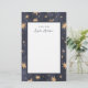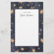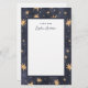 Esta elegante y moderna papelería cuenta con un rico fondo de color azul marino con elegantes estrellas celestes de color oro falso y un área de centro blanco para escribir su carta.