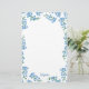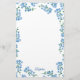 Bonita papelería floral con un marco de flores azules olvidadas no. Personalice el diseño de fondo con su nombre en un elegante guión azul.