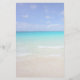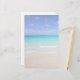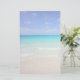 Una playa de arena blanca con olas suaves y vistas al océano y a las aguas turquesas cristalinas. El cielo azul brillante y las nubes suaves y onduladas dan a este ensueño lugar de vacaciones en el caribe tropical. Tranquilo y apartado, el lugar perfecto para relajarse y descansar. Una superposición semitransparente se sienta sobre la parte superior para una escritura más fácil.