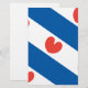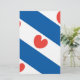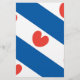 Bandera de Frisia, provincia de los Países Bajos. Se compone de rayas diagonales azules y blancas; en las rayas blancas hay pompeblêden rojo, hojas de la liga amarilla, que pueden recordarnos a los corazones, pero según las instrucciones oficiales "no deben tener forma de corazón".