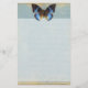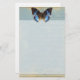 Una imagen elegante lamentable hermosa de una mariposa azul, en un fondo azul con el francés del vintage script. ©Wickedlylovely
