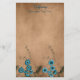 Esta papelería de papel de color bronce con flores azules en la parte inferior es un bonito diseño de encaje falso. Personalizar tu nombre y texto en la parte superior. ¡Compra el tuyo hoy!