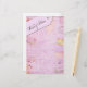 Papel de viaje para ducha de novia con fondo rosa y crema con mapas descoloridos, marcas de agua, marcas de cancelación y sellos. Ideal para el viajero. "Palabras de consejo" en letra de guión en etiqueta de equipaje rosa.