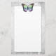 Personaliza tu propio juego de papel de papelería con una brillante galería de arte personalizado con mariposa arco iris. El diseño de la estacional presenta una mariposa brillante adornada con una vid follaje sobre fondo gris y espacio para personalizar con tu nombre y dirección. También hay artículos de papelería adicionales disponibles con este diseño. Si necesitas ayuda para la personalización, por favor contacta conmigo directamente.