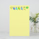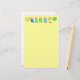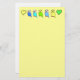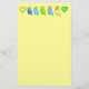 Papel de escribir amarillo con los parakeets cartoonish y los corazones verdes y amarillos
