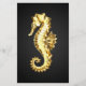 Artístico, poligonal, caballito de mar de chispa, Relieve metalizado dorado sobre fondo negro.