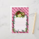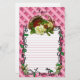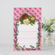 Un fondo rosa/rojo y celosías, una caja blanca con viñas alrededor, una canasta de rosas rojos y blancos y un par de rosales rojas están en esta papelera. Cambie el nombre en la parte superior a cualquier nombre que desee y tenga papel para usted o un regalo.
