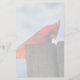 Estacionería con una fotografía de un cardenal rojo bonito sobre un trozo de madera.