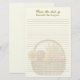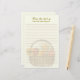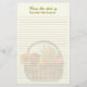Papel de carta forrado con tema de granja. Diseño de fondo de cesta de verduras con líneas para componer fácilmente una nota escrita a mano. Color ecru con dos líneas de texto en la parte superior. "De la mesa de - con nombre" en letra cursiva y tipografía impresa.