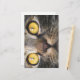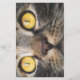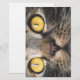 El diseño presenta un retrato fotográfico de un gato con ojos distintivos.