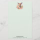 Papel de carta con una hermosa ilustración con un lindo ciervo. Rodeado de rosas y flores rosadas.