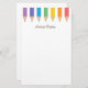 Un conjunto de lápices de colores en los colores del arcoiris de rojo, naranja, amarillo, verde, azul, índigo y violeta, ordenados cuidadosamente juntos. Un diseño colorido y atractivo para los niños. ¡Apropiado para el nuevo año escolar! Personaliza con el nombre o frase corta del pequeño artista.