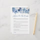 Este es un consejo floral azul turbulento para el juego de ducha de novia. Consejo para la novia - ¡Escriba palabras significativas de consejo para la novia!