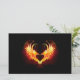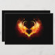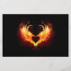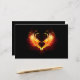 Ángel dispara el corazón con las alas flameantes sobre fondo negro.
