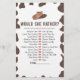 Este es un Rodeo Occidental de Vaqueros ¿Le gustaría? Juego de Baby Shower. *¿Preferiría? - La mamá que será rellenará su propia hoja de respuestas personal. Los clientes girarán en torno a la opción correcta dado su propio conocimiento personal sobre la mamá que debe ser. ¡Gana quien tenga las respuestas más correctas!