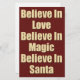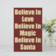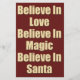 Navidades educados que hablan de Santa Claus con texto color crema y rojo oscuro con copos de nieve y fondo de papel rojo. Creer en el amor, creer en la magia, creer en Santa.