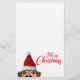 Ilustracion de animales de la Feliz Navidad: Perro curioso con sombrero de Santa. Saludo estacional escrito en letras de tipografía moderna.