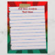 Divertido membrete, con texto de letras rojas listo para tu nombre personalizado o cualquier texto, en papel de bloc de notas desgarrado y alineado pegado a un diseño gráfico divertido de ráfagas de fondo rojo y verde. Perfecto para los Navidades y la lista de regalos de vacaciones para niños, adolescentes y hombres y mujeres de todas las edades! ¡Excelente para tus Navidades carta a la familia y amigos y estupendos como compras y tareas para hacer también recordatorios de lista!