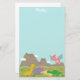 ¡Efectos de escritorio lindos y coloridos del dinosaurio para los niños! Vienen con dinosaurios del dibujo animado, un Brachiosaurus amarillo, un Triceratops púrpura, un Stegosaurus verde y un Pterodactylus rosado. Fondo de montañas y de nubes. Este diseño atractivo es grande para los niños que aman temas jurásicos, prehistóricos o del dinosaurio. El texto lee la "nota".