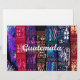 Guatemala tiene un rico patrimonio cultural. Los diseños textiles producidos por la población indígena de Guatemala son el ejemplo perfecto de este hecho. Son coloridas, vibrantes, complejas y únicas. Este diseño captura algunos de estos diseños textiles guatemaltecos en una foto, y tiene el texto "Guatemala" impreso en letra cursiva encima de los diseños textiles. El texto blanco sobre los diseños extremadamente complejos crea un interesante contraste. Este es el diseño perfecto para cualquiera que haya visitado este hermoso país, y se puede colocar en múltiples productos y lucir absolutamente bello.