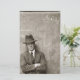 Presenta una clásica captura de pantalla vintage de un hombre masculino con traje y gorra con una expresión divertidamente petulante. Hecho en sepia. Un papel divertido para mantener el contacto con su familia. Todo muy divertido.